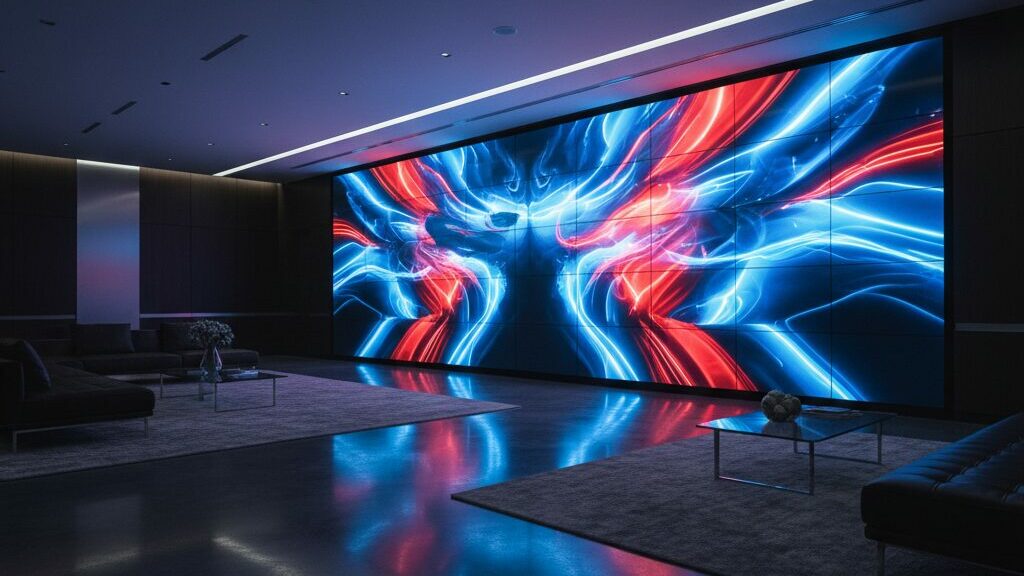 Wewnętrzne ściany LED z ultra-małym pixel pitch dla showroomów, recepcji, centrów handlowych, sal konferencyjnych i muzeów. Perfekcyjna jakość obrazu z bliska.